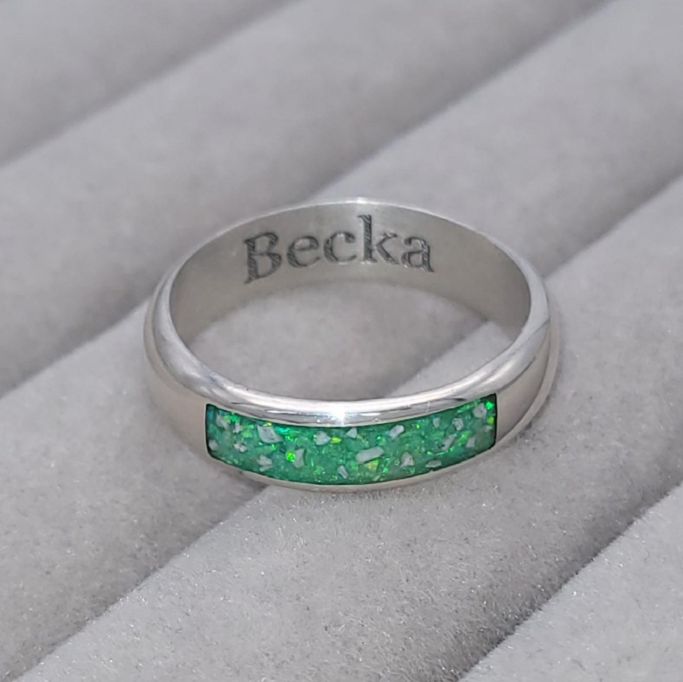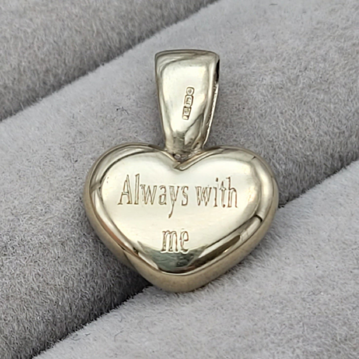 With both a laser and a CNC engraving machine, Ashes of Ashleigh can mark delicate and intricate pieces, as well as deep engraving on the inside of rings, backs of pendants, and charms etc. Ensuring long lasting engravings on areas in constant contact with the skin.