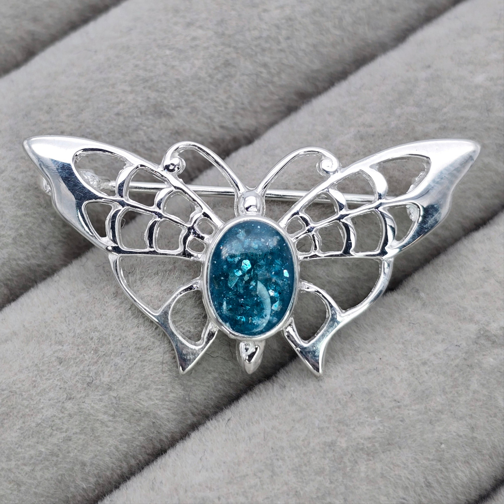 This beautiful butterfly brooch is approx 35mm x 16mm in size, it has 8x6mm oval in the centre to hold your inclusion of choice. This is fixed into place with a badge like pin.
