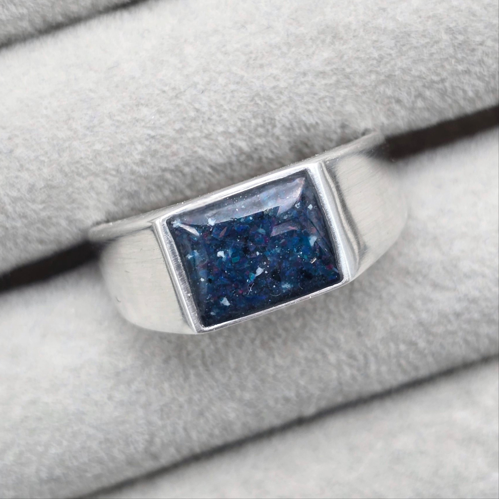 A solid sterling silver gent ring with a rectangular bezel of approx 10mm x 8mm to hold your inclusion within.