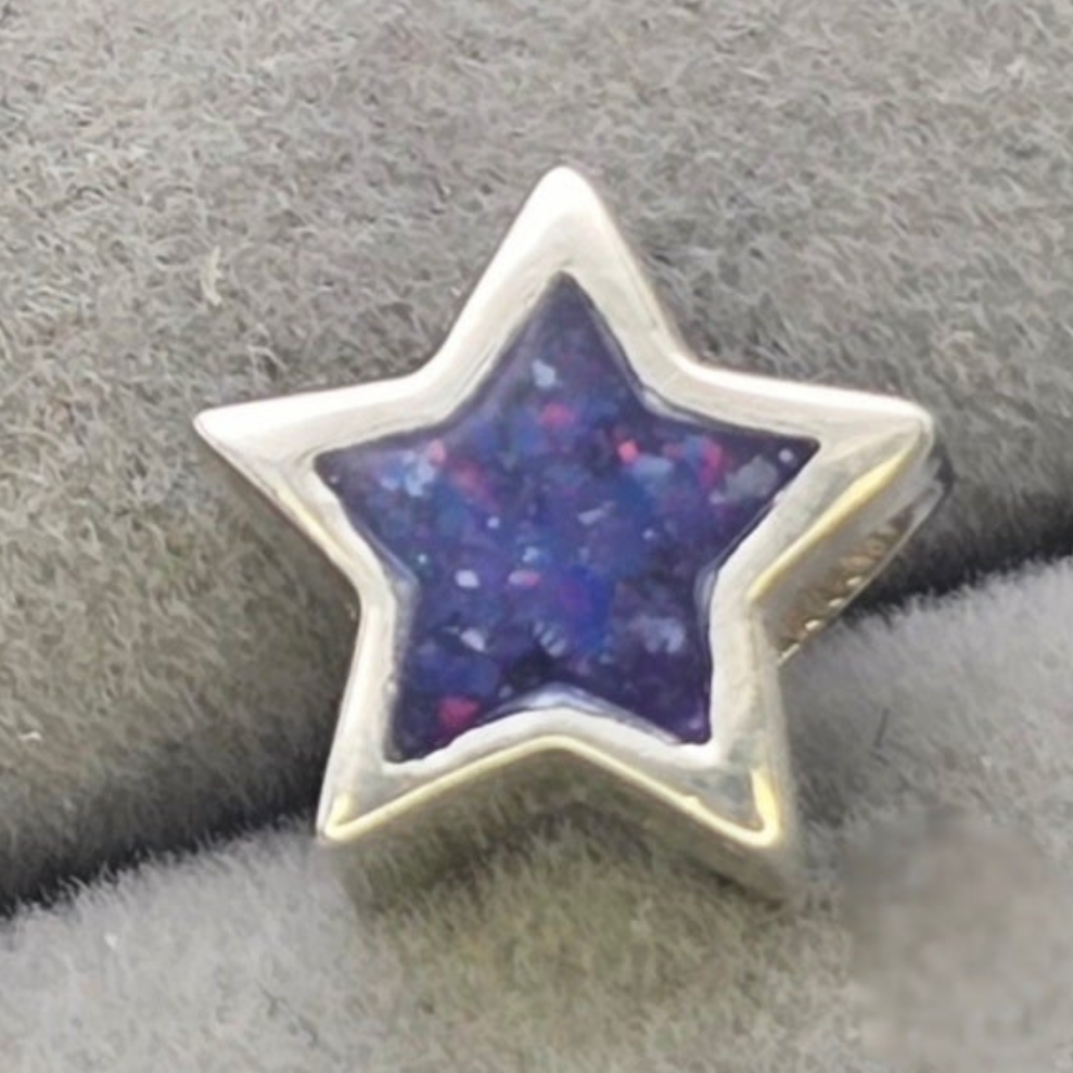 This star shaped charm holds your loved ones inclusion in a base/colour of your choice. It's compatible with Pandora style bracelets. ⭐️ Matching items available ⭐️