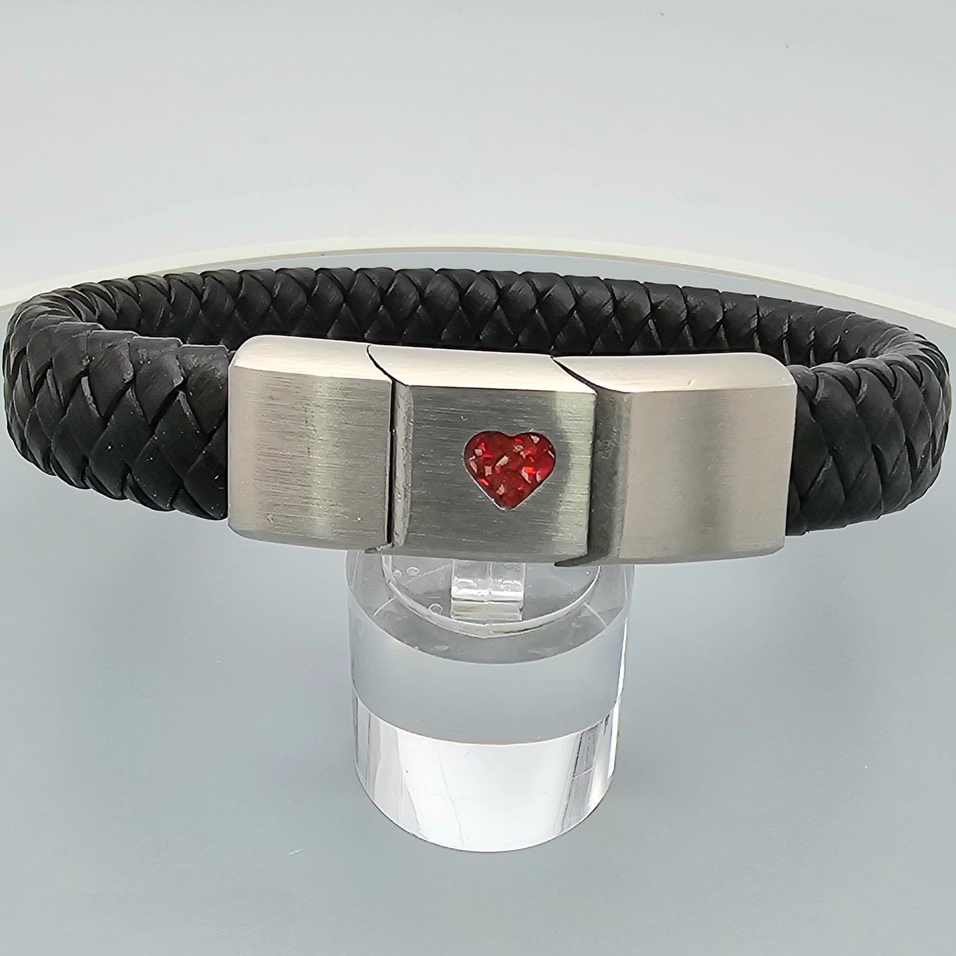 This unisex bracelet has a genuine leather strap with stainless steel, magnetic clasp that contains a heart shaped recess of approx 5.1mm x 5.8mm to be filled with resin.
