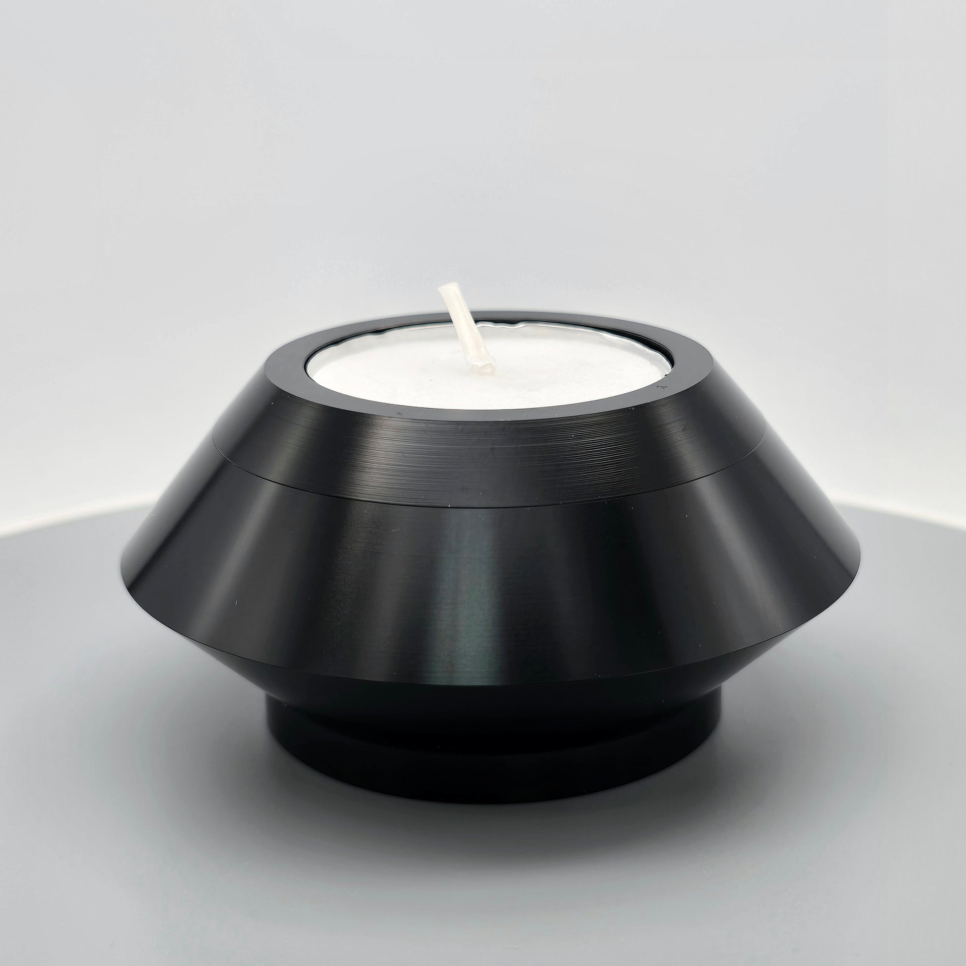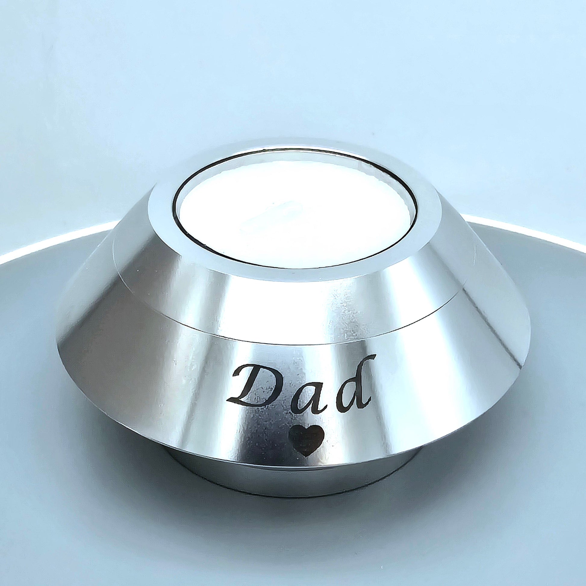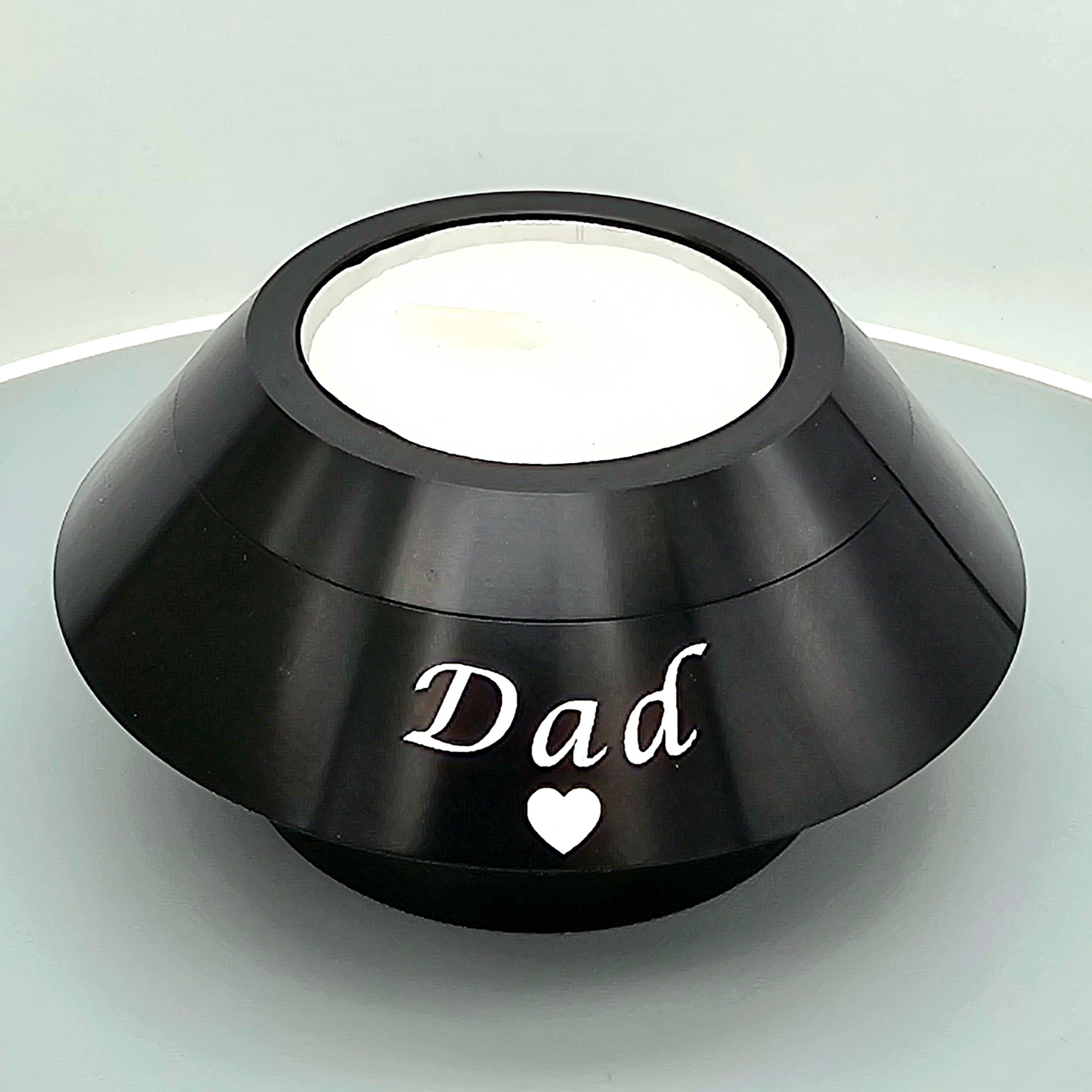 Light the candle in memory of your loved one knowing a token amount of their ashes, a lock of hair, or something else special is held underneath.