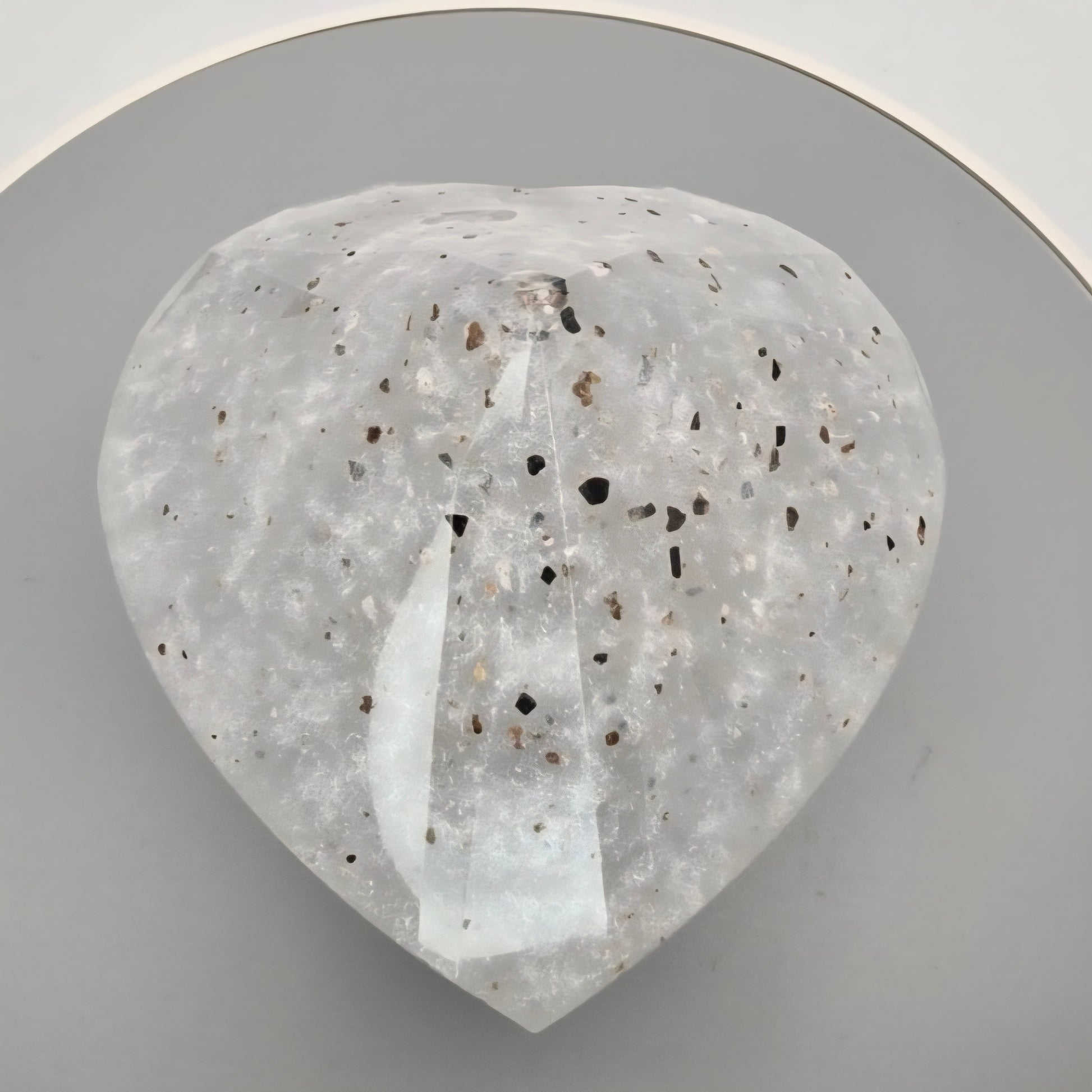 This heart paperweight has faceted sides giving it a diamond like appearance. It is approximately 8.5cm x 8cm x 6cm in size and can hold an inclusion of ashes